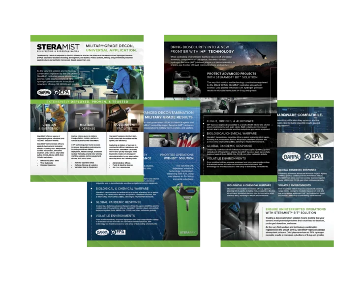 Download the brochure to discover the full potential of SteraMist in military, aerospace, space travel, and government applications.