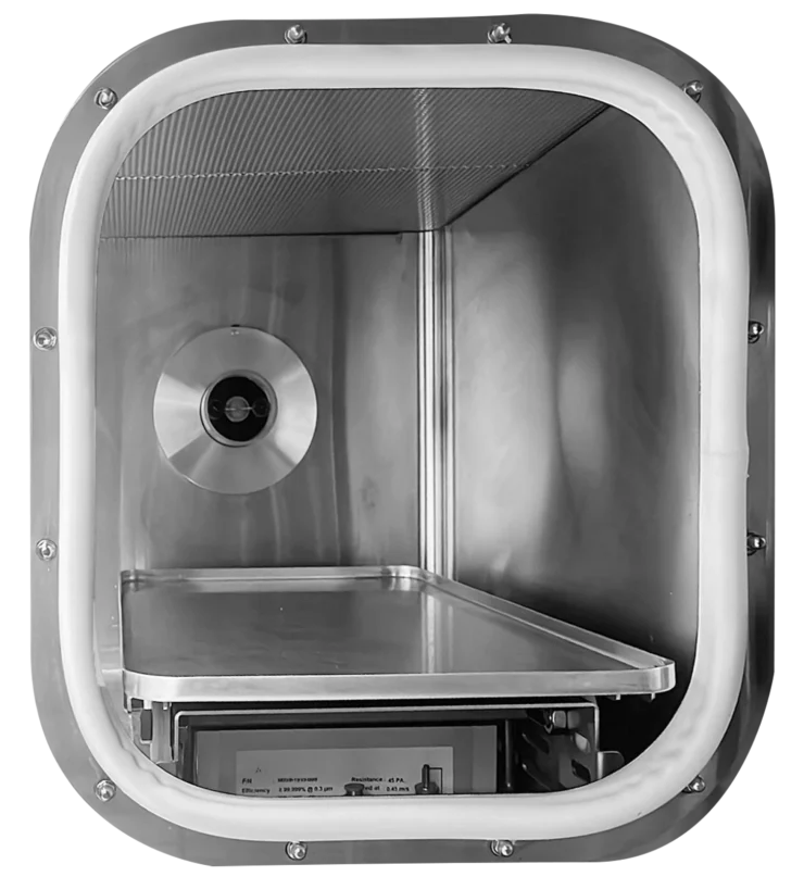Compatible with both the SteraMist Standalone and Environment System, the SteraBox is a fully-customizable small-to-medium size enclosure for use exclusively with SteraMist. Built to client specification and primarily designed for non-sterile environments, the SteraBox injects iHP mist into a chamber and cleanly vents into the surrounding area using HEPA filtration with carbon filter stack.